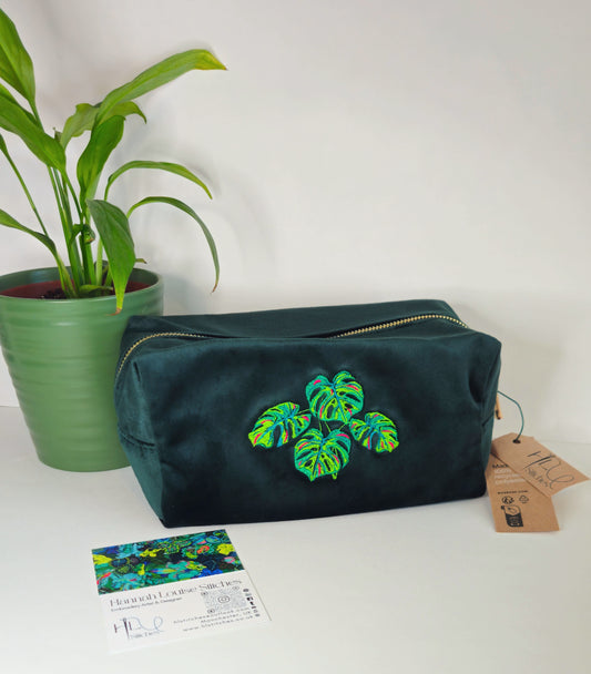 Luxurious Velvet Cube with Monstera Leaf Embroidery – Sustainable Gift or Travel Accessory